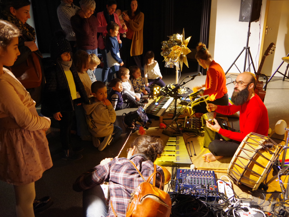 Aussi, nous avions envie de mêler nos univers musicaux avec des objets du quotidien, des instruments et des machines. Raconter une histoire du début à la fin en articulant les morceaux les uns après les autres, laissant ainsi faire la musique, sa poésie propre. Eveiller les sens des enfants et des plus grands grâce à l'écoute et l'observation.